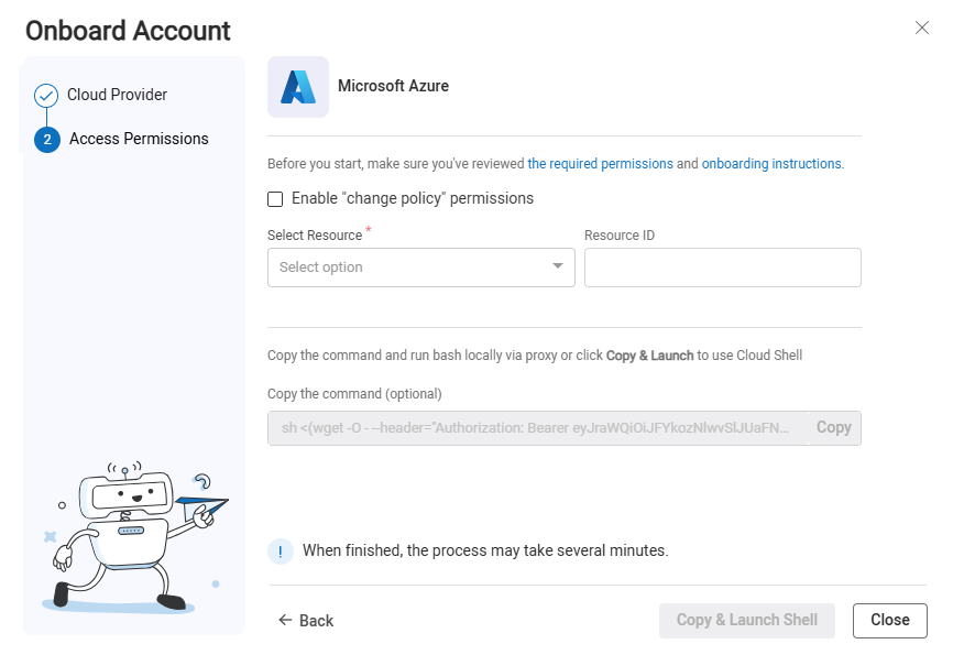 Important: To run the script, the user must possess the necessary permissions for creating a service principal on the selected resource.