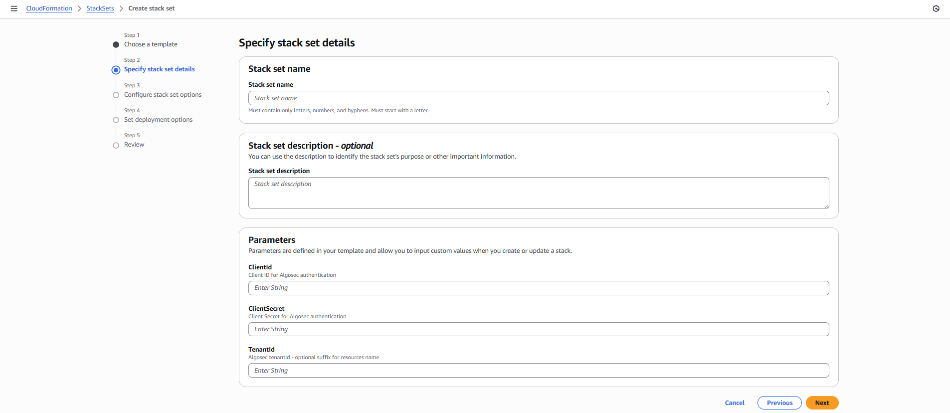 Updating the stack ensures that the new credentials are applied to all AWS components managed by AlgoSec.
