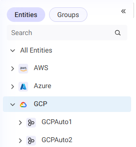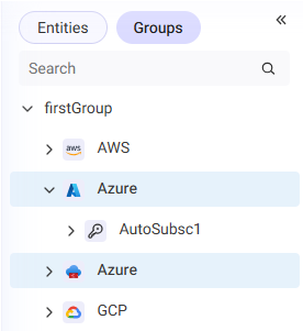 The Navigation Tree displays onboarded cloud accounts in a structured, hierarchical view. It enables you to easily navigate and focus on the information relevant to a specific entity that you want to work with.