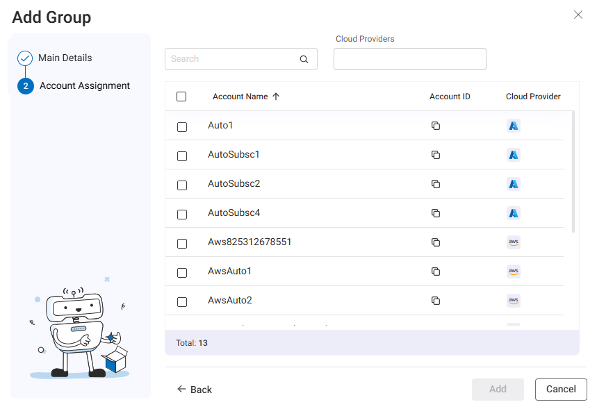 Note: Although called Account Groups, each group can include a mix of AWS accounts, Azure subscriptions, and Google Cloud projects.
