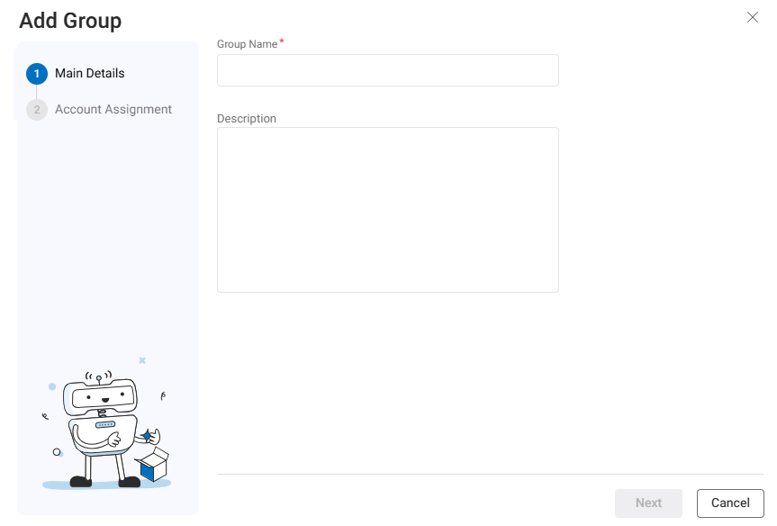 1. In the Account Management page Account Groups tab, click +Add Group.