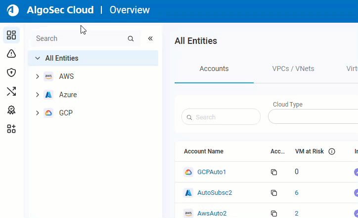 ACE Cloud Network Security's Overview page is crafted to empower you to take control of your network security in a dynamic cloud environment. It provides an easy-to-use interface offering a comprehensive view of all your accounts. The Overview integrates strategic tools for prioritization and navigation within the intricate realm of account management. For details, see Review Account Status. |