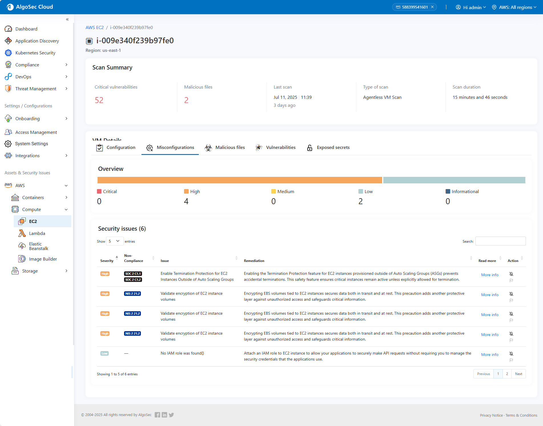 For EC2 instances scan results appear on the graphs for AWS environments (highlighted below for illustration purposes only).