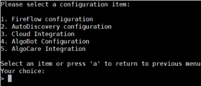 In the algosec_conf main menu, enter 14 Product and cloud configuration.