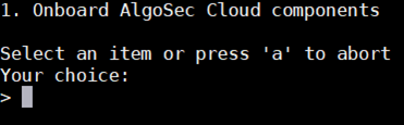 Enter 1 to select 1. Onboard AlgoSec Cloud components.