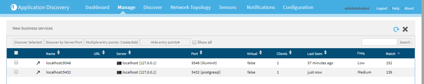 Note: All the detected business services are map-based business services (which start with a server and port as the entry point). Web-based business services (which start with a URL as the entry point) have been deprecated. URL information is still provided when the traffic collection method supports URL identification, but only for the sake of identifying the business service.
