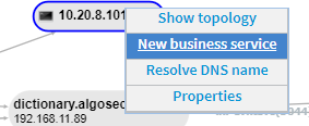 On the topology map that appears, locate and click the server you want to base your business service on, and then select New Business Service. For example: