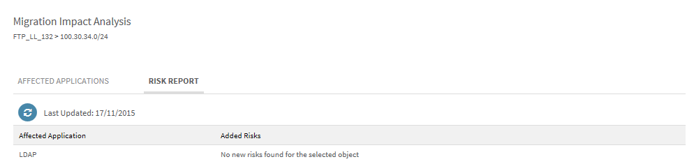 Click the Risk Report tab. If a report is not available, AlgoSec performs the risk analysis.