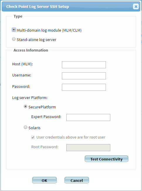 AFA can collect data or logs via SSH or OPSEC. For Check Point versions R80 and higher, you must also define data collection via REST.