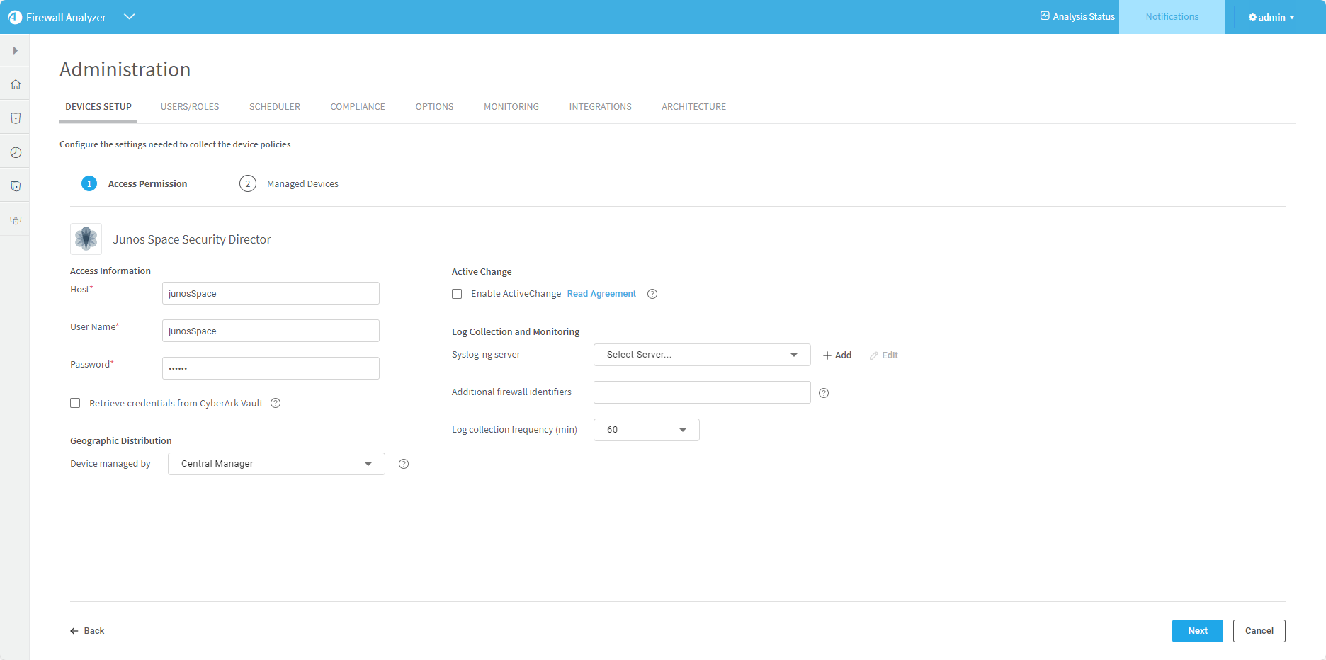 Tip: If you have multiple Juniper Netscreen or SRX devices, we recommend adding the Juniper NSM or Space that manages these devices.