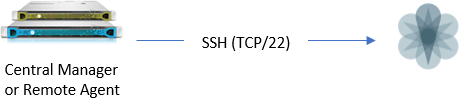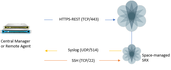 The following diagram shows an ASMS Central Manager or Remote Agent connecting to a Juniper SRX device.