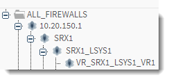 Note: SRX clusters in passive/active mode appear as a single node in the tree, while SRX clusters in active/active mode appear as two nodes.