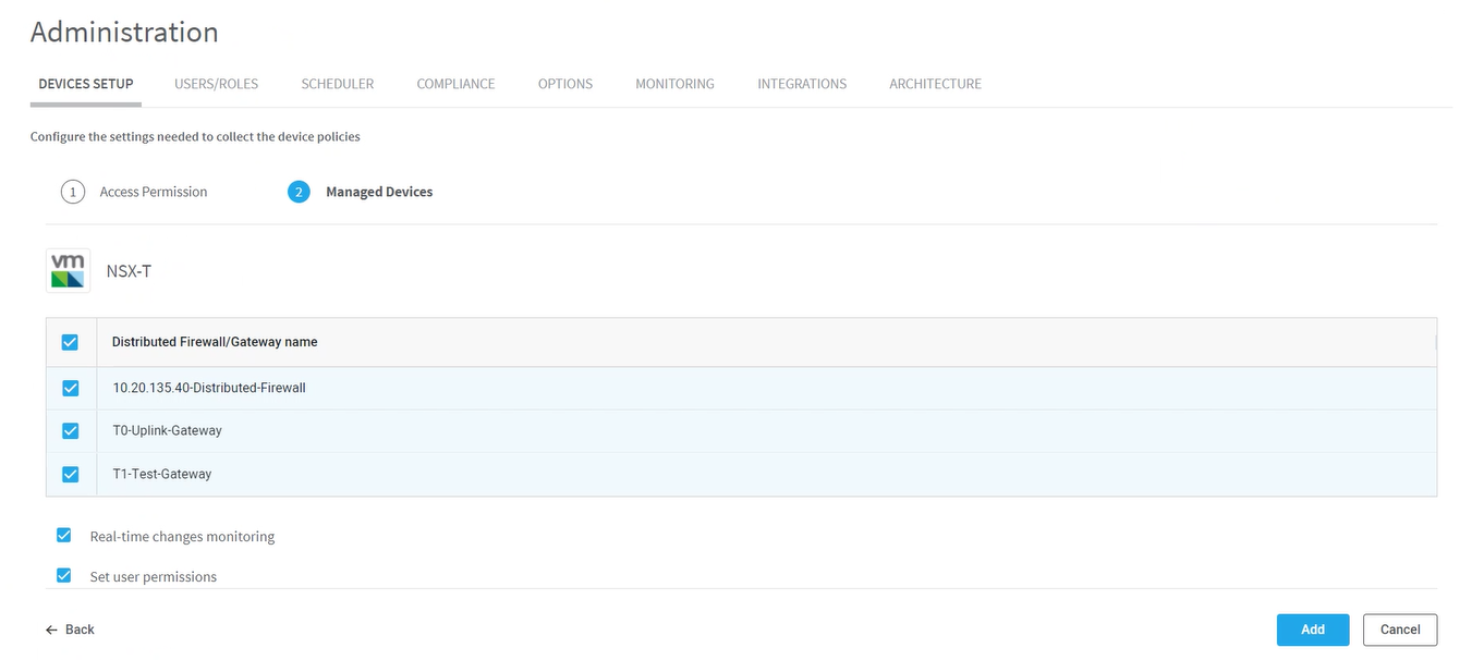 2. Click New > Devices > VMware > NSX-T. In the vendor device selection page, click VMware > NSX-T.