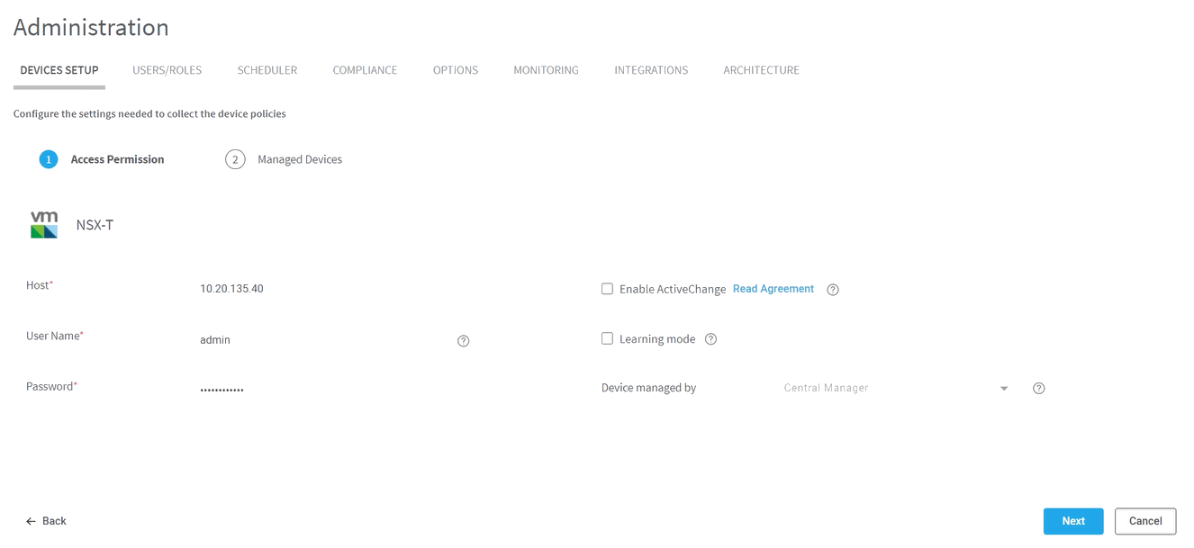 IMPORTANT: Do not delete the NSX-V device. Deletion of the device is irreversible and includes all associated reports and data.