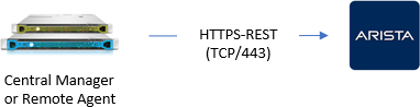 The following image shows an ASMS Central Manager or Remote Agent connected to an Arista device over HTTPS-REST.