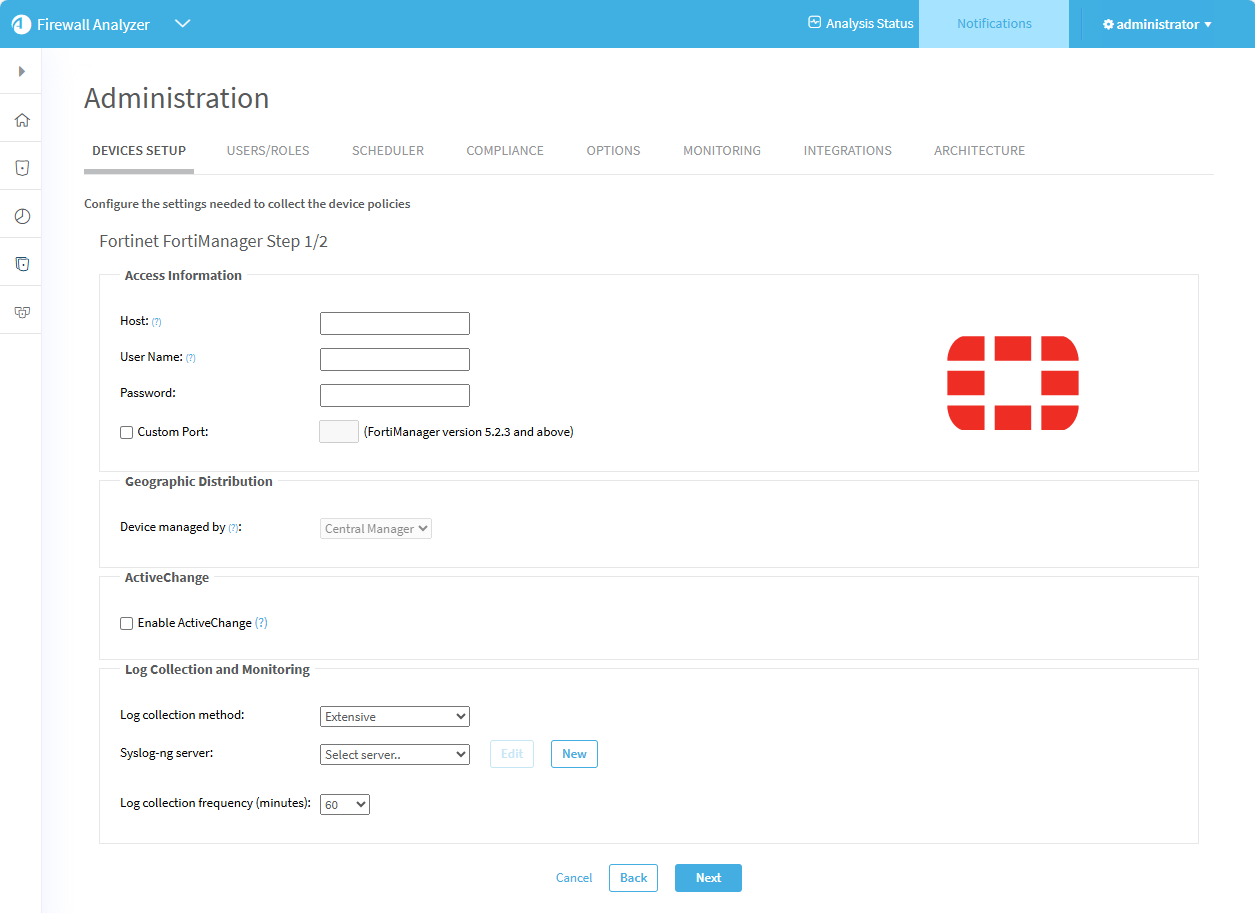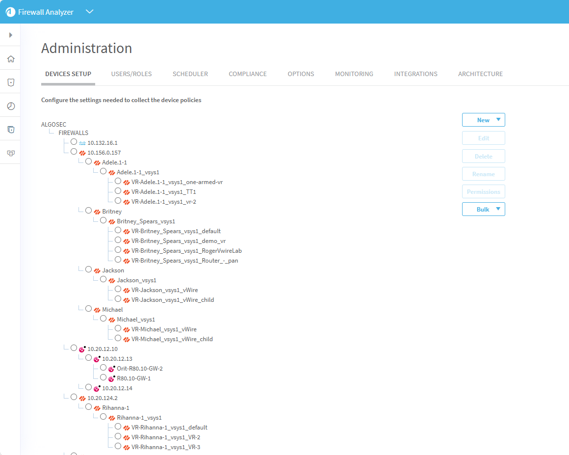 Note: Make sure to open the necessary port between each device and the AlgoSec server, depending on the protocol being used to connect to the device.