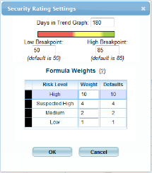 .The Security Rating Settings dialog is displayed.
