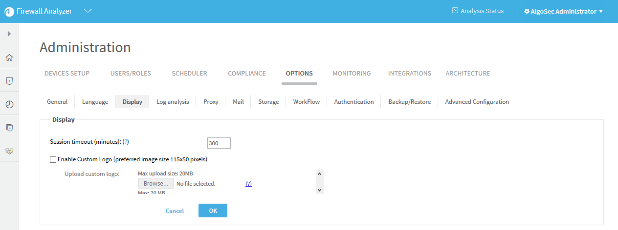 Select this option to upload a custom logo that will appear at the top right corner of every page of the AFA, FireFlow and AppViz Web Interfaces, as well as all future AFA reports.