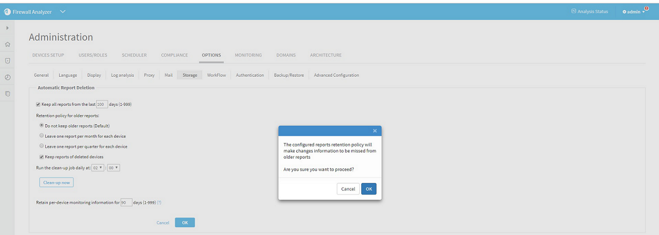 If the number of days to retain reports is greater than the number of days to retain the monitoring information, a confirmation message appears.