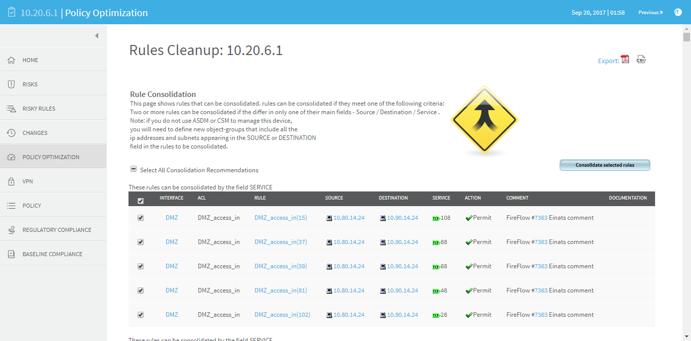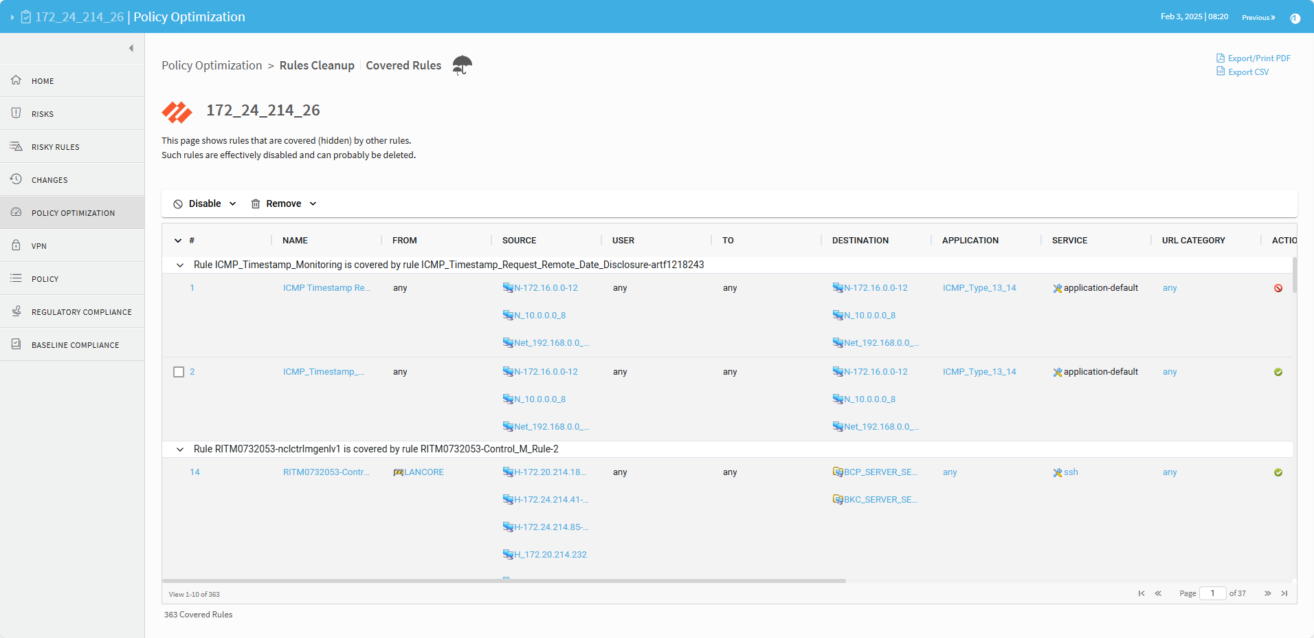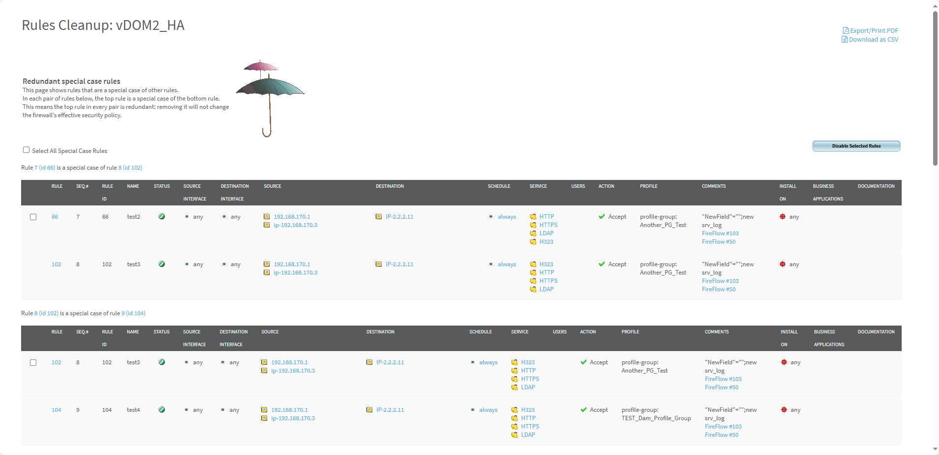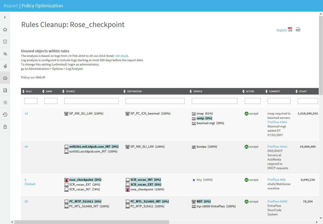 Rules Cleanup enables the user to make your policy more streamlined and effective. It may include the following: