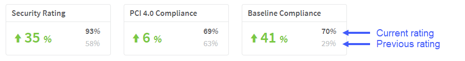 The security rating indicates the device's degree of compliance with security standards. A security rating of 100% indicates full compliance. For information on how the security rating is calculated, as well as how to customize the security rating settings, see Configure security ratings.