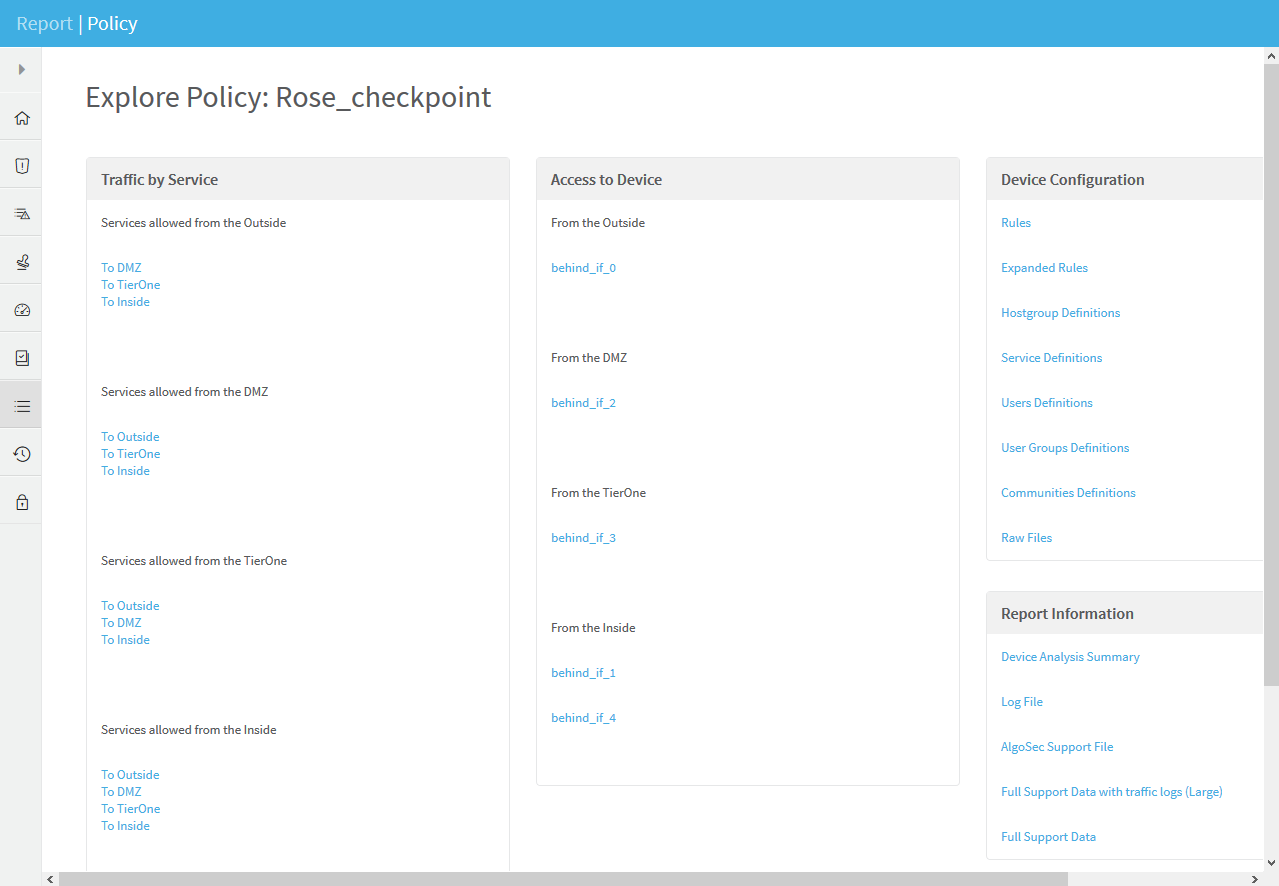 AFA provides various advanced capabilities that enable you to explore complex details of your device policy. Click on the Policy tab in the report to drill down into various aspects of your policy: