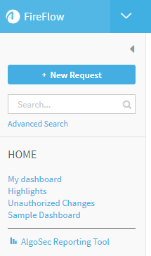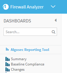 The AlgoSec Reporting Tool is available from the main menu on the left in AFA or FireFlow, or from AppViz.