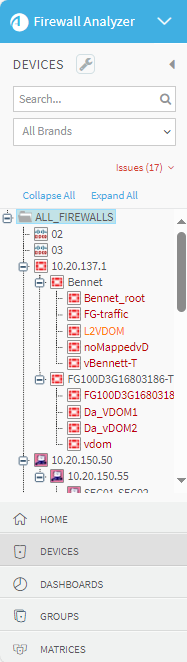Note: Click Collapse All or Expand All to display a collapsed or expanded list in device tree of the devices that match the Search field and All Brands dropdown filters.
