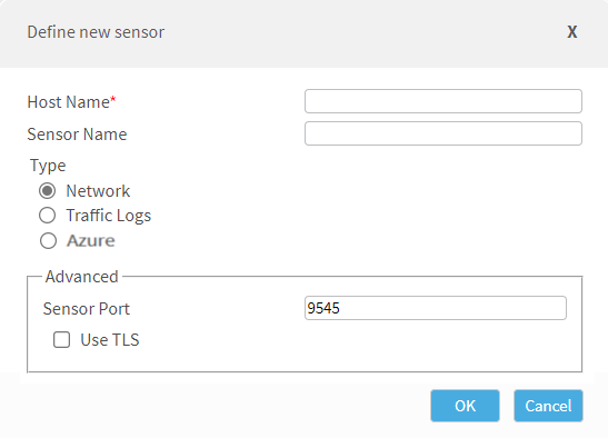Specify sensor Type, the Sensor Port, and select Use TLS.