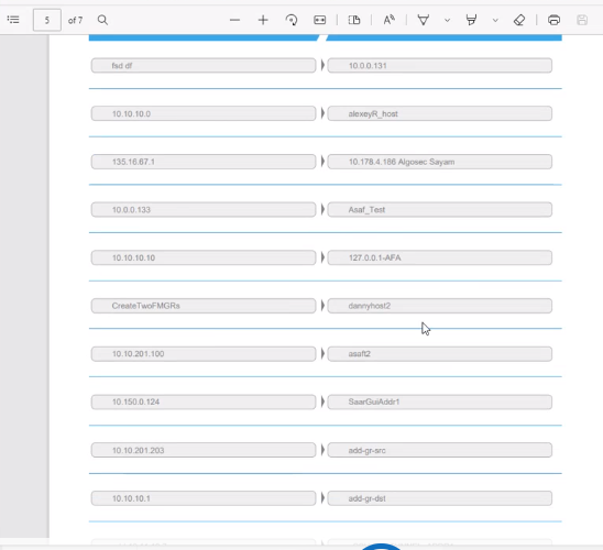 The PDF exported by the non-admin user shows only the IP address or name of the objects the user shares tags with. The rest of the relevant objects are indicated by empty fields is displayed: