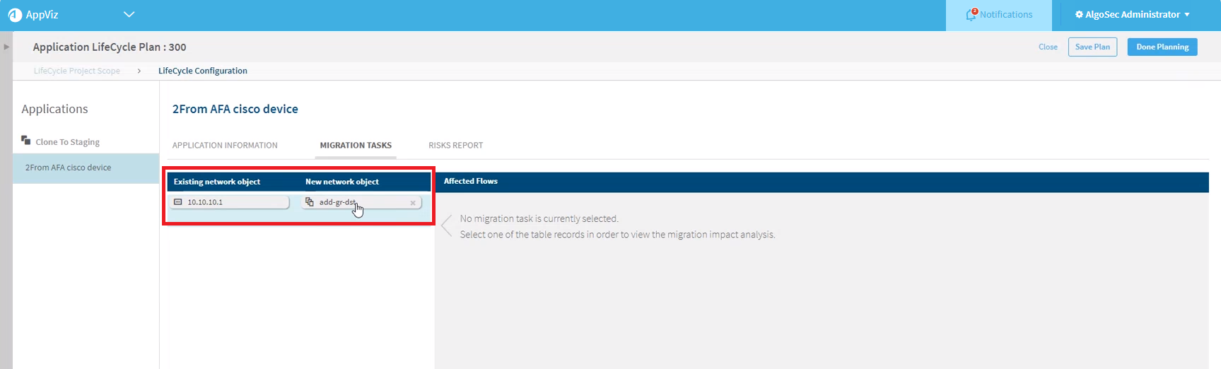 Example of Migration Task during planning stage: All objects are seen by administrator: