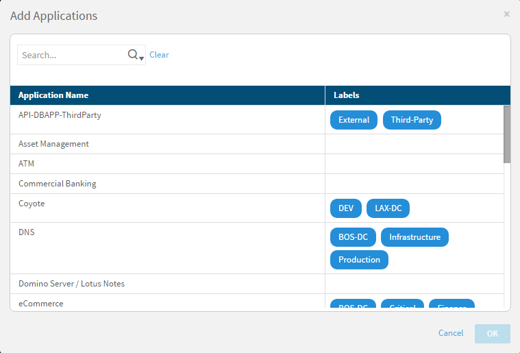 Select applications and network objects