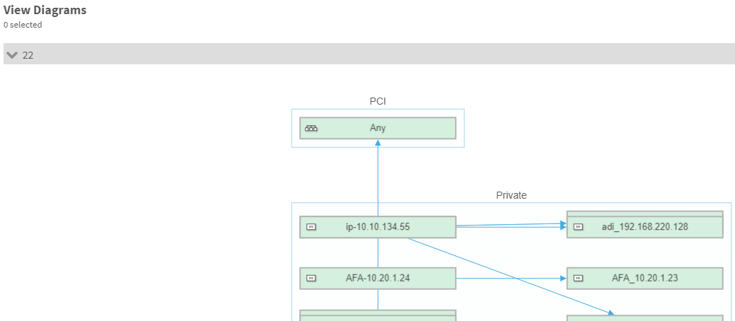 • To view the application diagrams relevant to a specific network object, hover over the network object and click the icon.