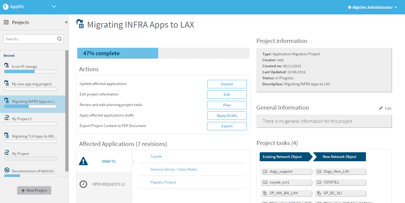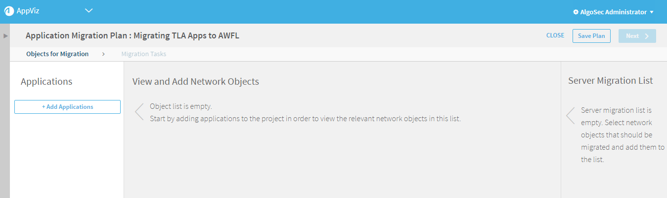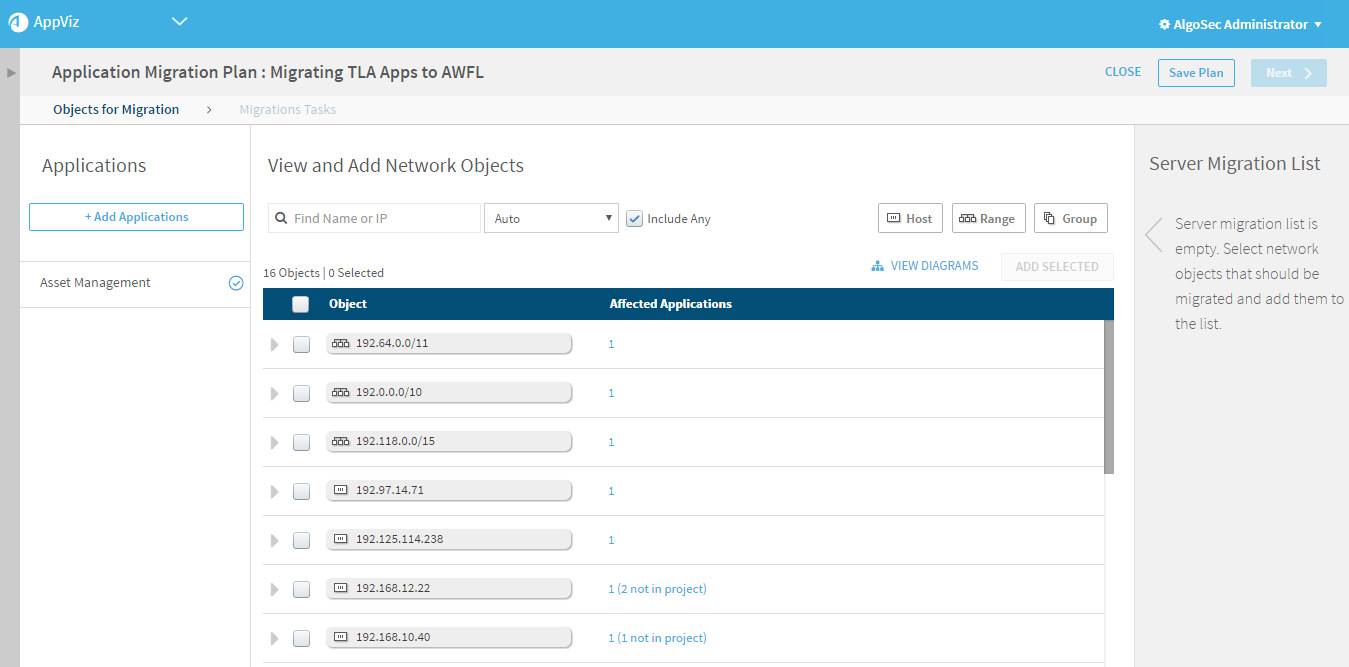 Note: Adding additional applications may result in additional network objects with affected applications not in the project.
