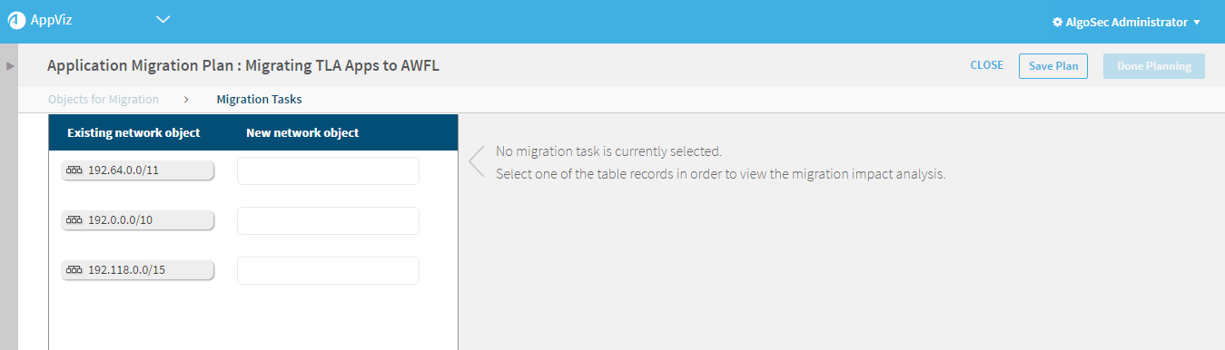 5. Select the network objects to migrate to. For details, see Migrate network objects.