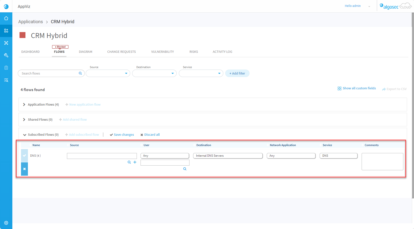 • Use the Search Flow filter to search for a flow by flow name, source, destination, service or comment.