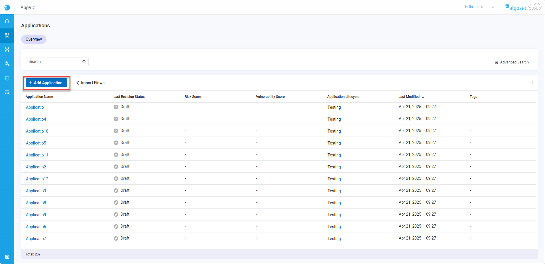 To sort by Application Name, Total Flows, or Last Modified date, click on its column name.