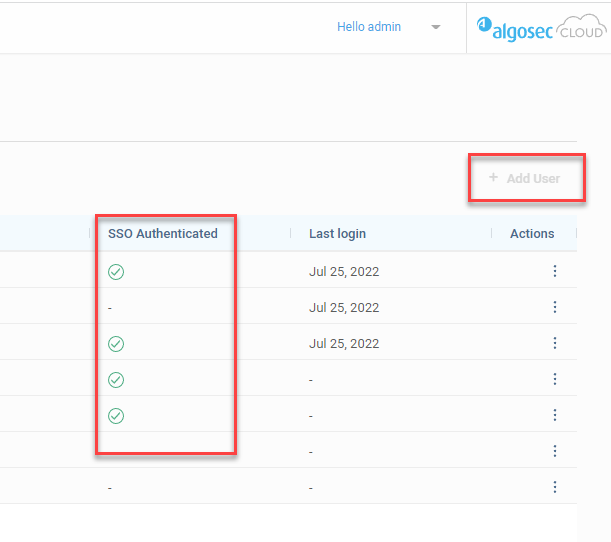 • A check appears on the Users tab in the SSO Authenticated column after a user logs in at least one time using SSO.