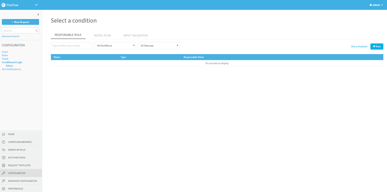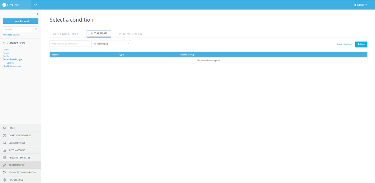1. Log in to FireFlow for configuration purposes. For details, see Log in for configuration purposes.