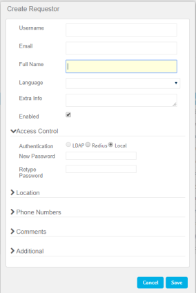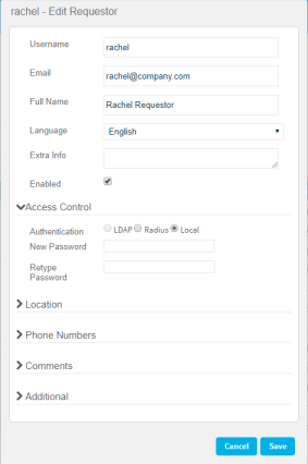 Note: All requestor usernames and email addresses must be unique, including disabled users.