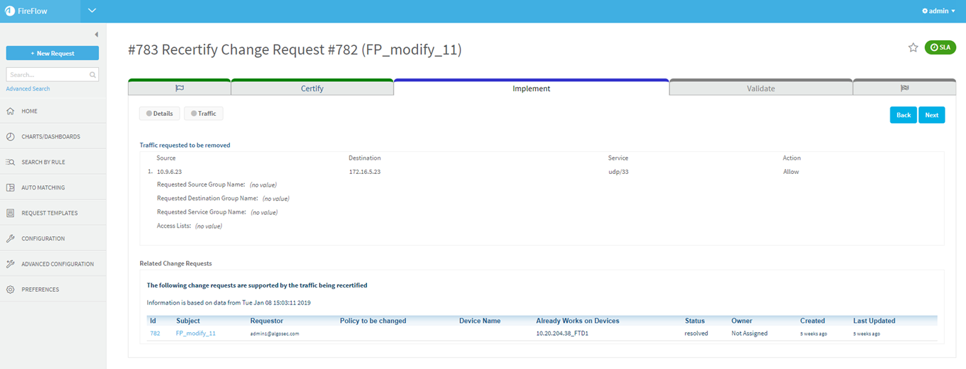 Once you have received the requestors' responses, you must decide whether to certify the Allow traffic or plan its removal.