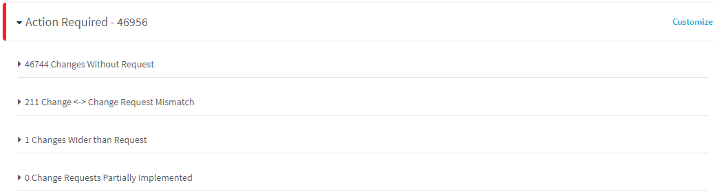 • Each change is associated with the correct change request.