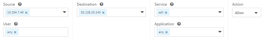 The request must include information about the relevant source, destination, service/application, and action for the change. For example, the requestor may submit the following request: