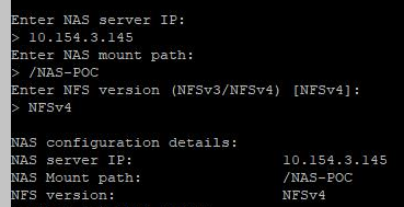 Enter the following NAS configuration details as prompted. See the example configuration dialog screenshot below.