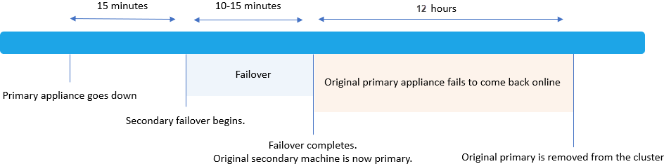 • If the original primary node comes back online within 12 hours, it remains in the cluster as the new secondary node.