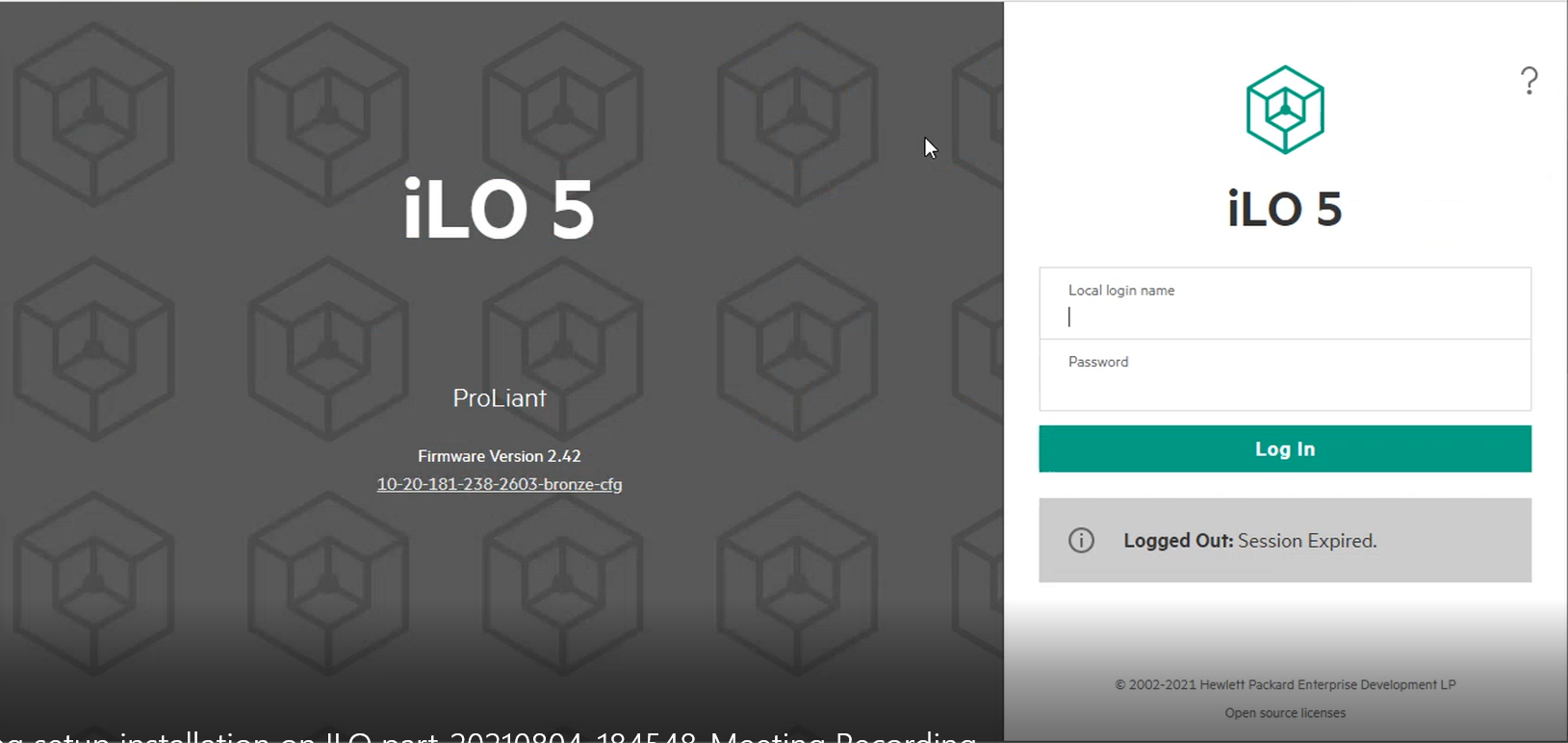 On the iLO 5 or 6 screen that is displayed, enter your AlgoSec Appliance machine's iLO credentials: login name and password.