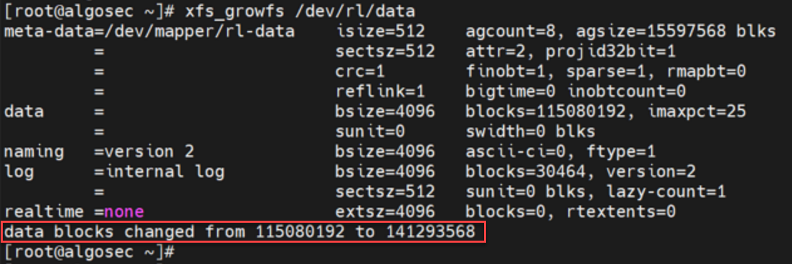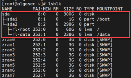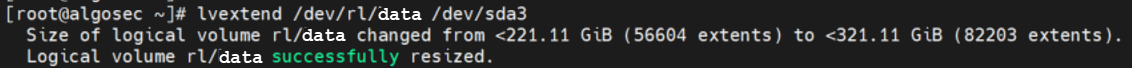 The following topic explains how to increase the disk space of a newly deployed AlgoSec VM (running Rocky8) by extending your out-of-the-box VM hard disk (up to 2TB).
