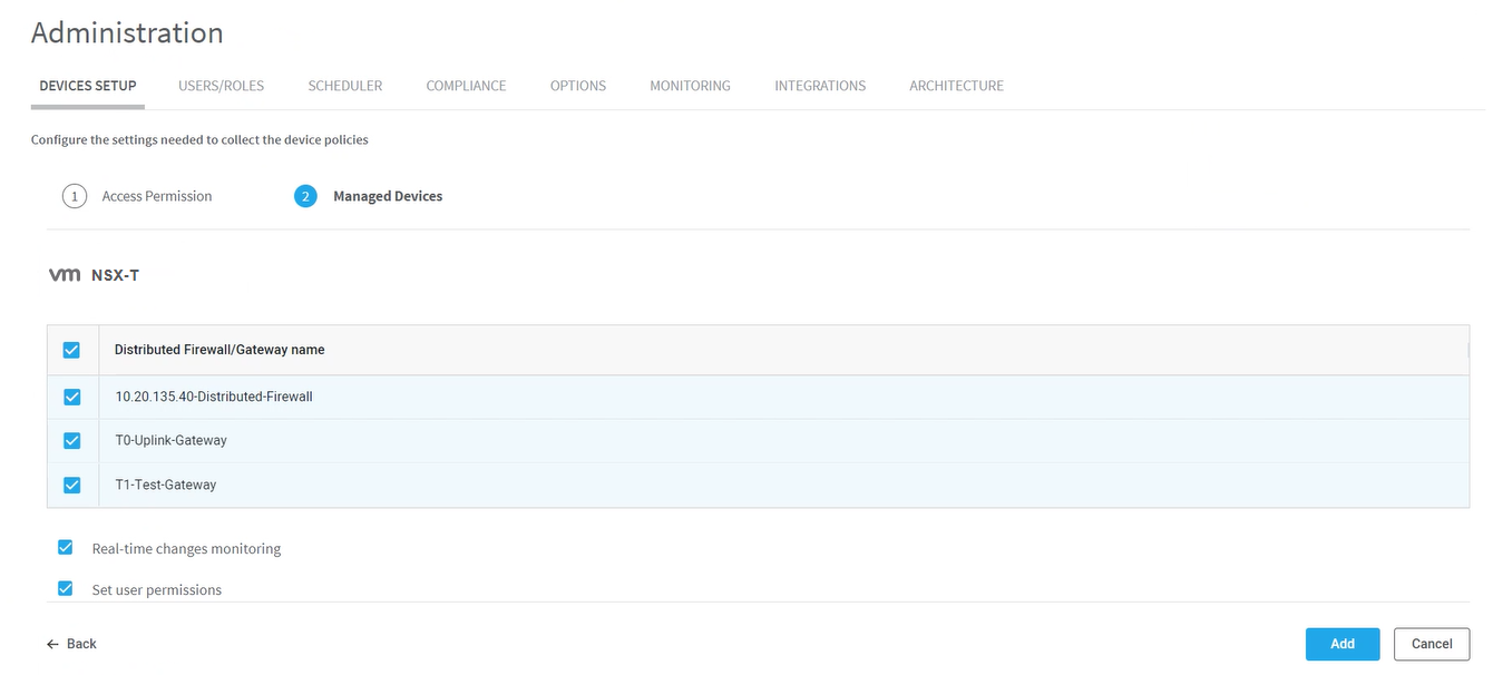 2. Click New > Devices > VMware > NSX-T. In the vendor device selection page, click VMware > NSX-T.