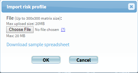 4. When your spreadsheet is ready, return to the Import risk profile dialog, and click Choose File. Browse to and select the file you edited, and the click OK to upload the file.