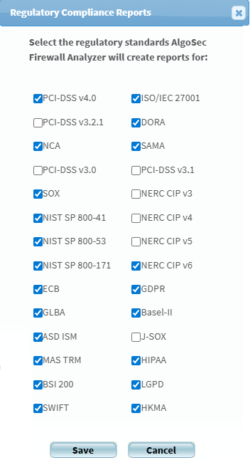 Supported regulatory compliance reports